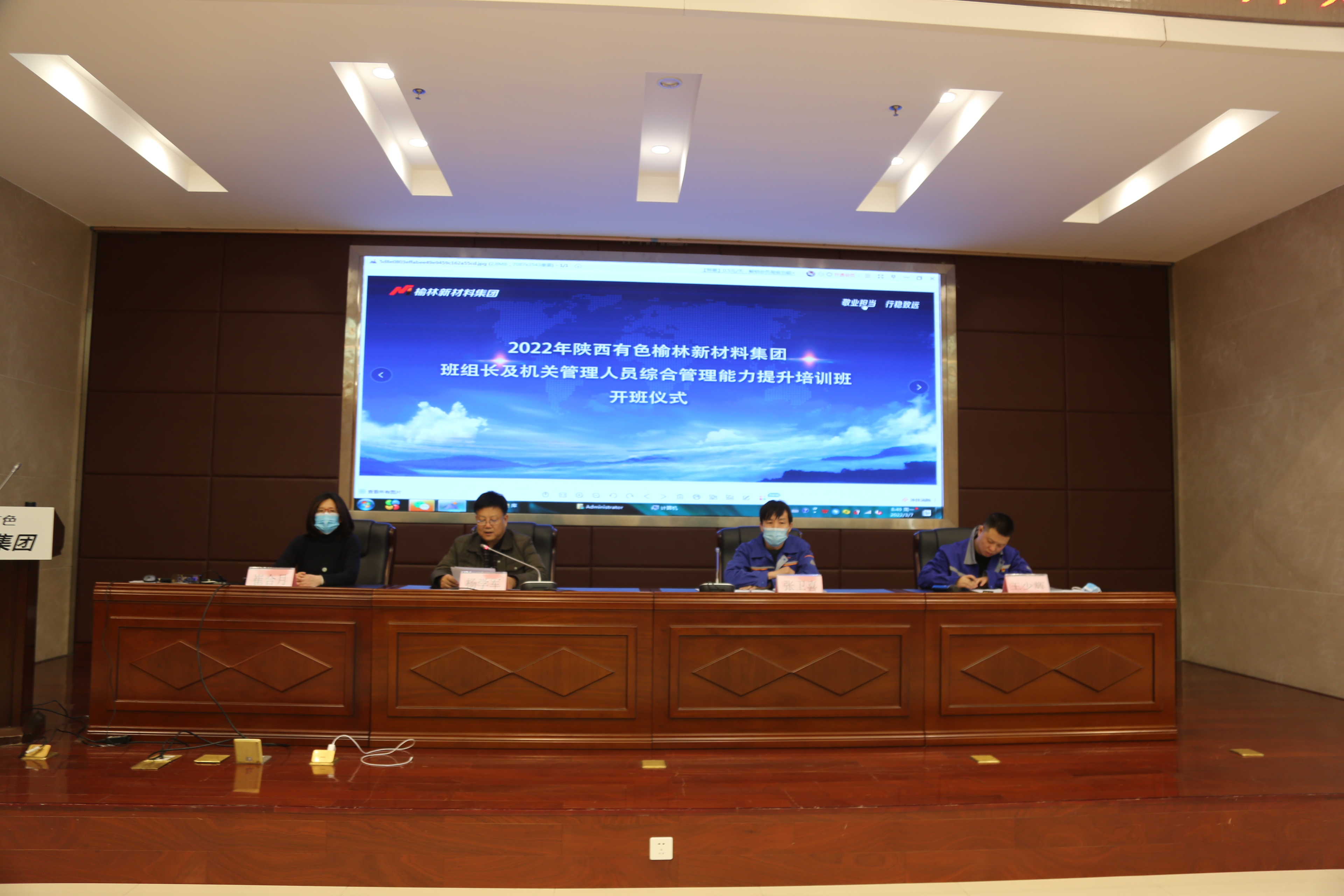 2022年3月7日上午,陕西有色榆林新材料集团班长及机关管理人员综合管理能力提升培训班开班典礼在陕西有色榆林新材料集团行政办公楼二楼会议室举行。陕西有色榆林新材料集团公司人力资源部经理张卫喜、bwin必赢国际中国官方网站副院长杨学军出席了开班典礼,学院培训相关老师和参培的100名学员参加了会议。开班仪式由陕西有色榆林新材料集团人力资源部副经理王少辉主持。