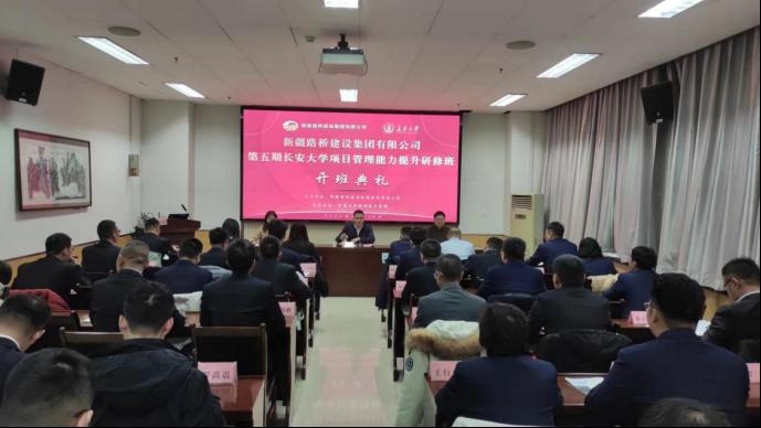 1月15日上午,我校承办的“新疆路桥建设集团有限公司第五期bwin必赢国际中国官方网站项目管理能力提升研修班”在南校区北院交通科技大厦顺利开班。新疆路桥建设集团有限公司党委委员、副总经理、南疆公司党委书记、执行董事王正伟 、bwin必赢国际中国官方网站副院长杨学军出席开班仪式,学院相关老师及全体学员参加。仪式由bwin必赢国际中国官方网站培训部主任李莹主持。